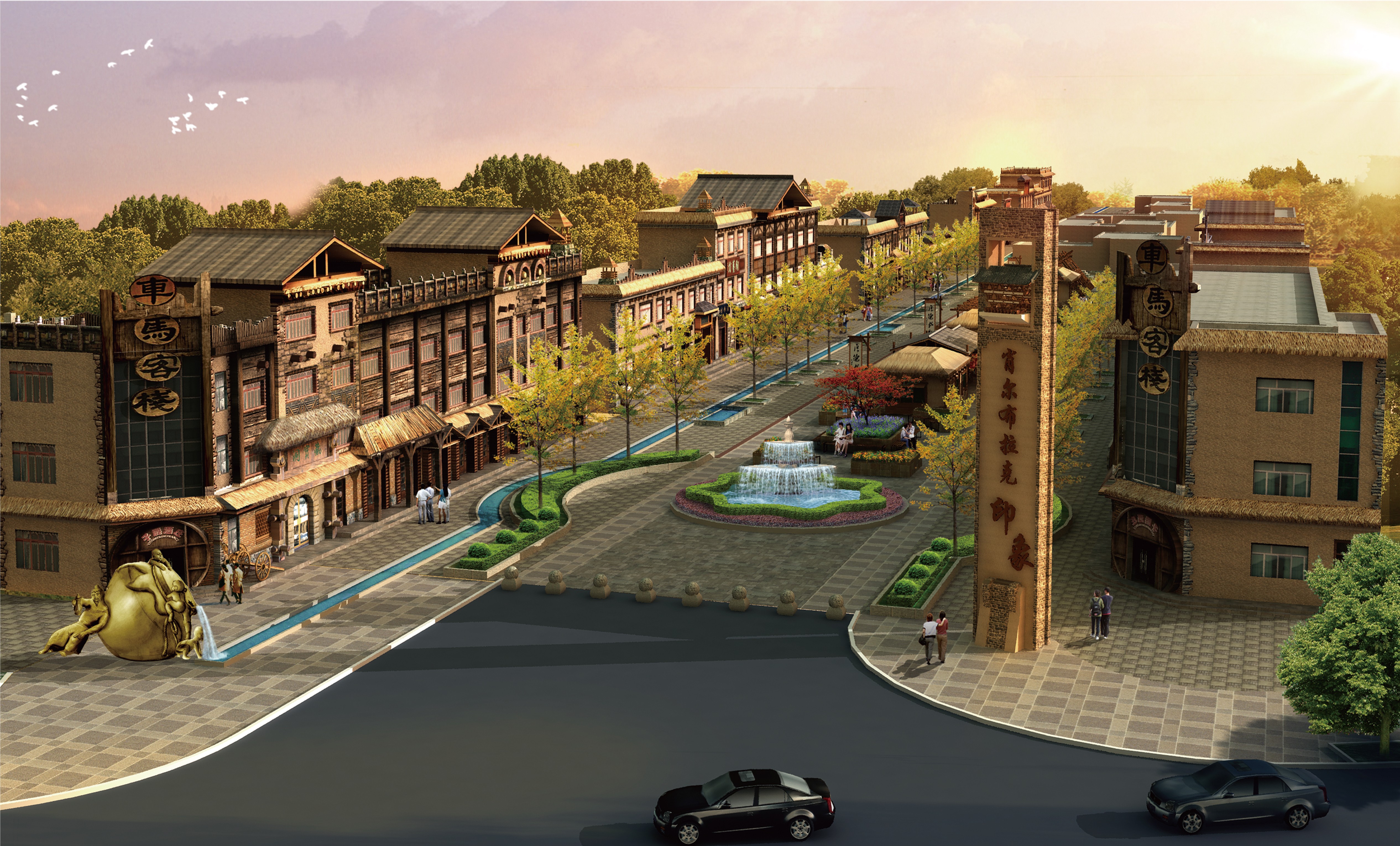 肖尔布拉克镇是因酒文化而闻名,街景建筑及城市景观体现了西域酒文化的深沉与厚重,通过古驿站,大漠酒庄建筑造型的塑造,体现其悠久的酒文化和豪迈的西域风情。