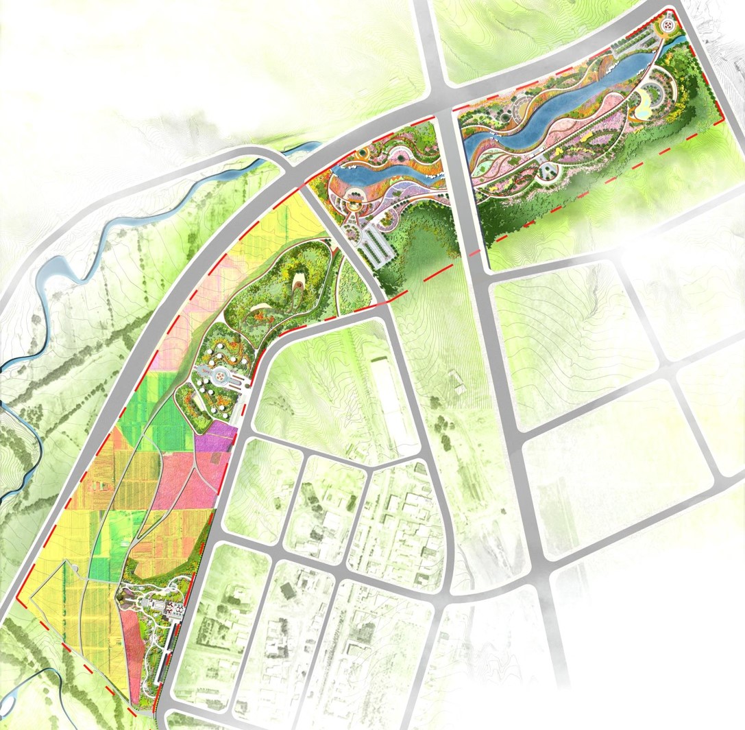 以古榆、农田、牧场为依托,打造一处集生态保育、休闲观光、文化体验等于一体的郊野公园。采用参与式、互动式、渐进式开发,四大主题片区给游人带来不同的游赏体验。“花·田