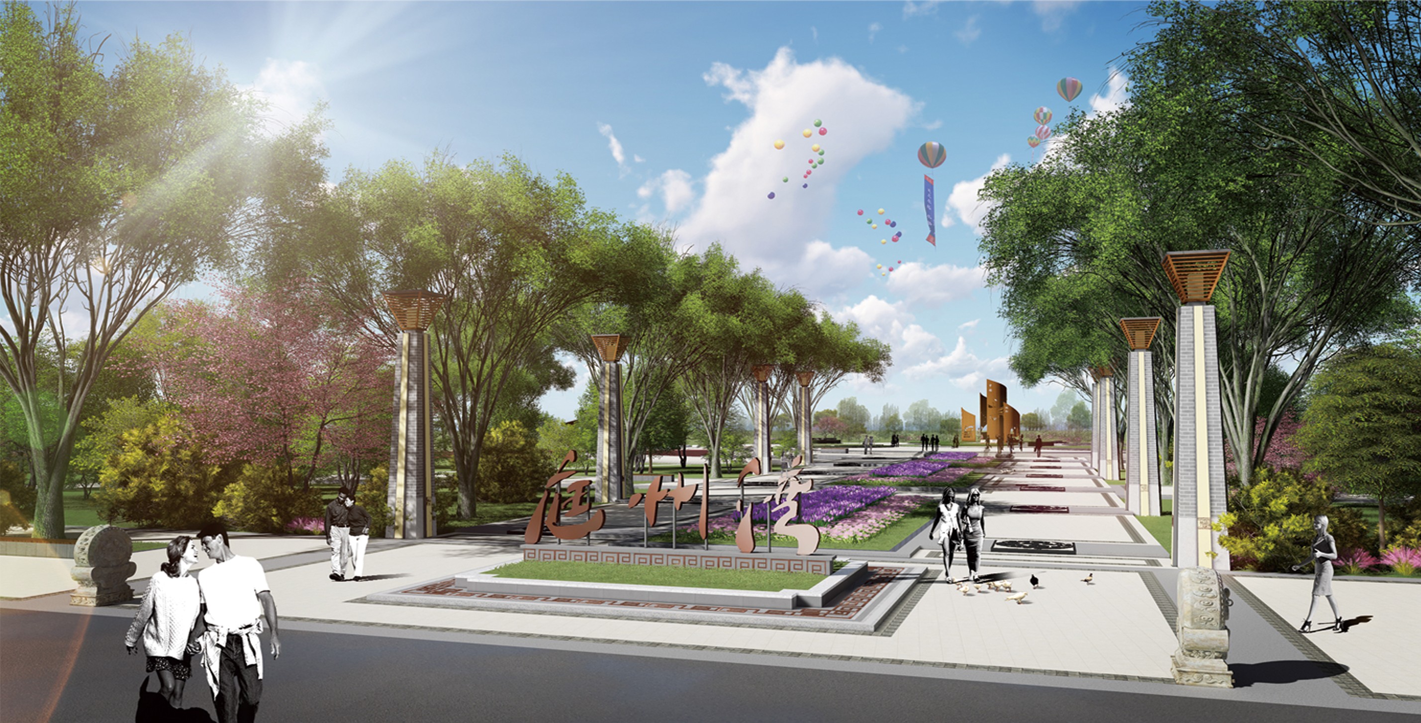 庭州湾即吉木萨尔县东沙河,原位于城市建成区的边缘地带,是主要的泄洪通道。随着城市发展的加快,逐步成为城市新区发展重要的空间依托,也是城市从外延扩张向内涵提升转型的重要空间。项目规划以水系治理和生态修复为基础,以庭州湾景观带为支点,以“十里沙河画卷,千年时空水岸”为定位,挖掘北庭文化精髓,融入汉风唐韵,突出城市特质,塑造了独特魅力的滨水公共开放空间,形成新区发展的重要引擎地段。